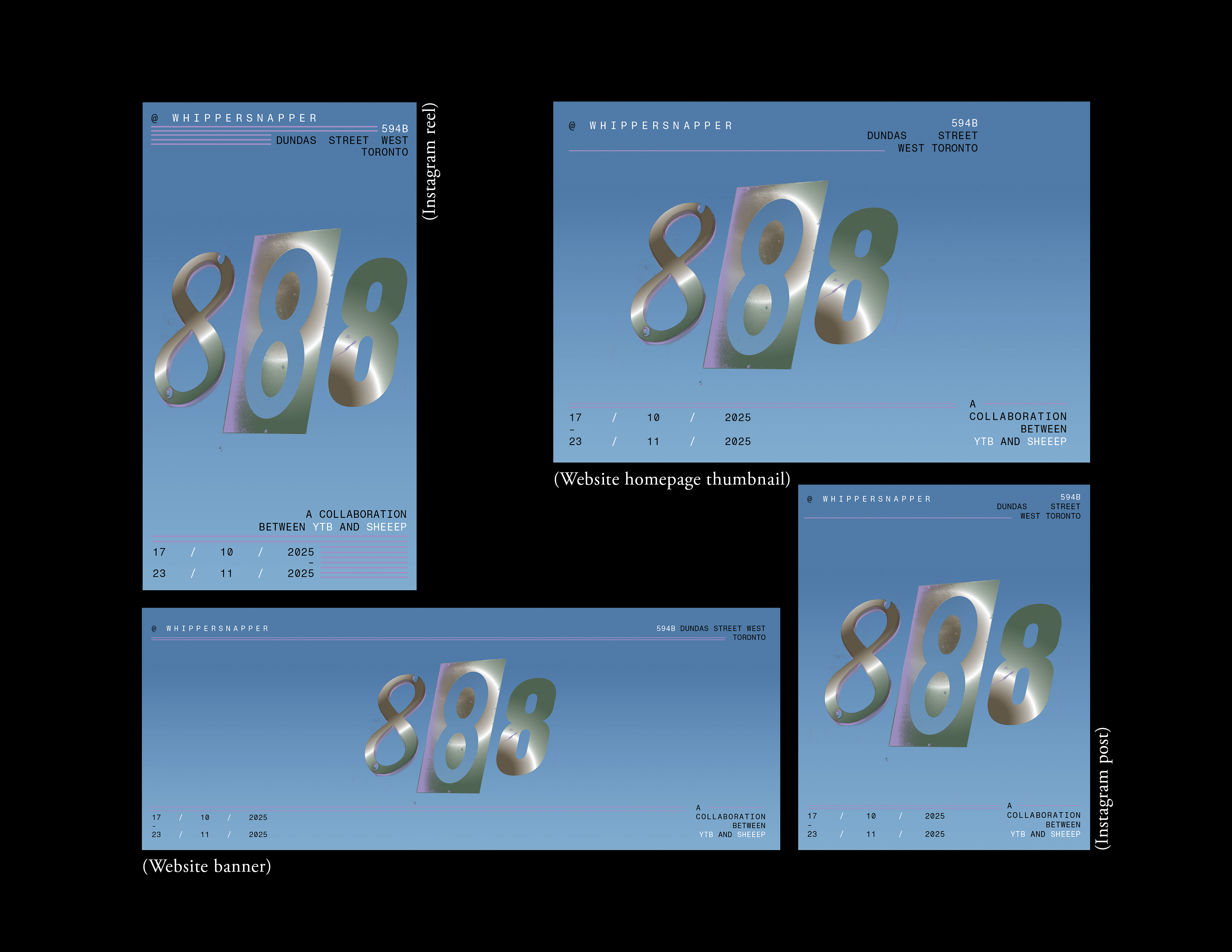 Promotional graphics for YTB, Sheeep, and Whippersnapper Gallery, 20205