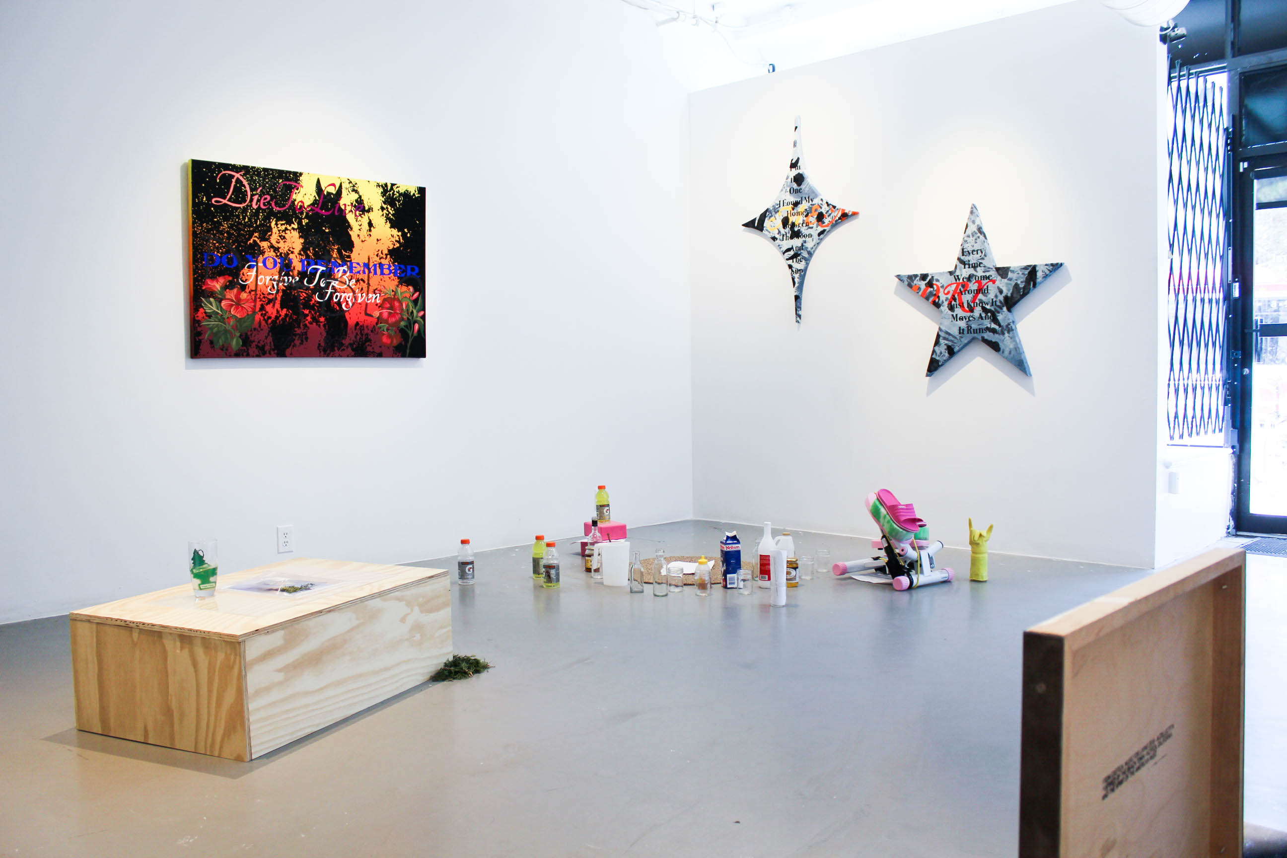 The Bald Eagle’s Claw calls attention to ideas of false-superiority in the United States of America by way of artworks that present as indulgent, disillusioned representations of American patriotism. By repurposing iconography associated with “Americana” culture, the artists involved in this exhibition use painting, sculpture, text and performance to question the U.S.A as a dominating force while demonstrating a concern for how its ideals have flooded beyond its borders and into global consciousness. Similar to the “American Dream,” the works feign this same sense of romantic optimism, gazing forward into the hopeful future, seemingly distracted from the bleak reality of the present.